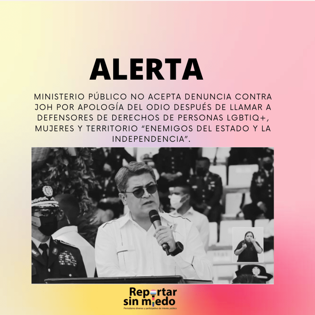Ministerio Público no acepta denuncia interpuesta por la organización Honduras Diversa contra el discurso que pronunció el mandatario en contra de defensores de derechos de poblaciones LGBTIQ+, las mujeres y el ambiente
