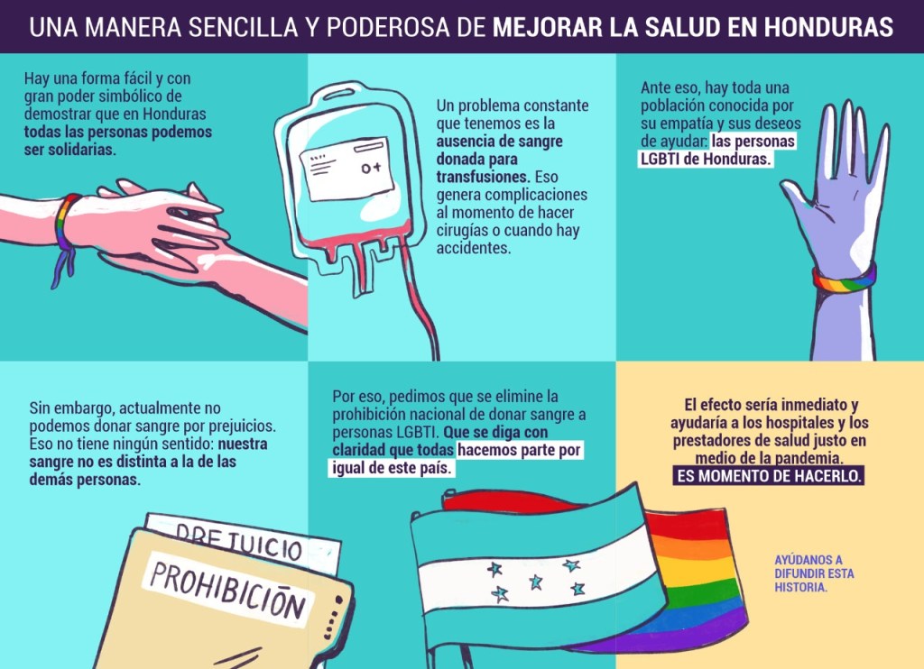 Al mismo tiempo, Castro tiene la oportunidad de mejorar la salud de los hondureñxs echando abajo la prohibición de donar sangre que pesa actualmente sobre las personas LGBTIQ+ en Honduras.