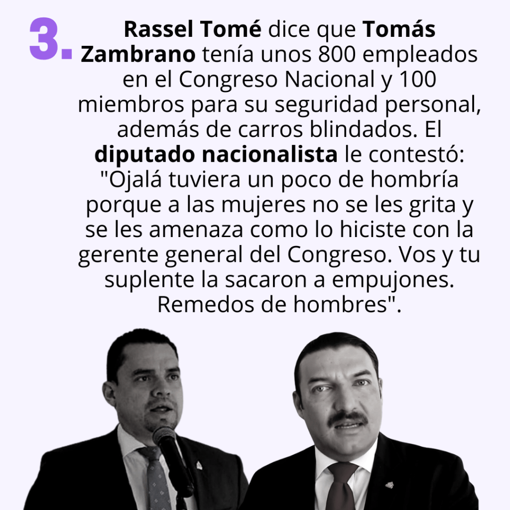 Rassel Tomé acusa a Tomás Zambrano de tener una planilla de 800 empleados.