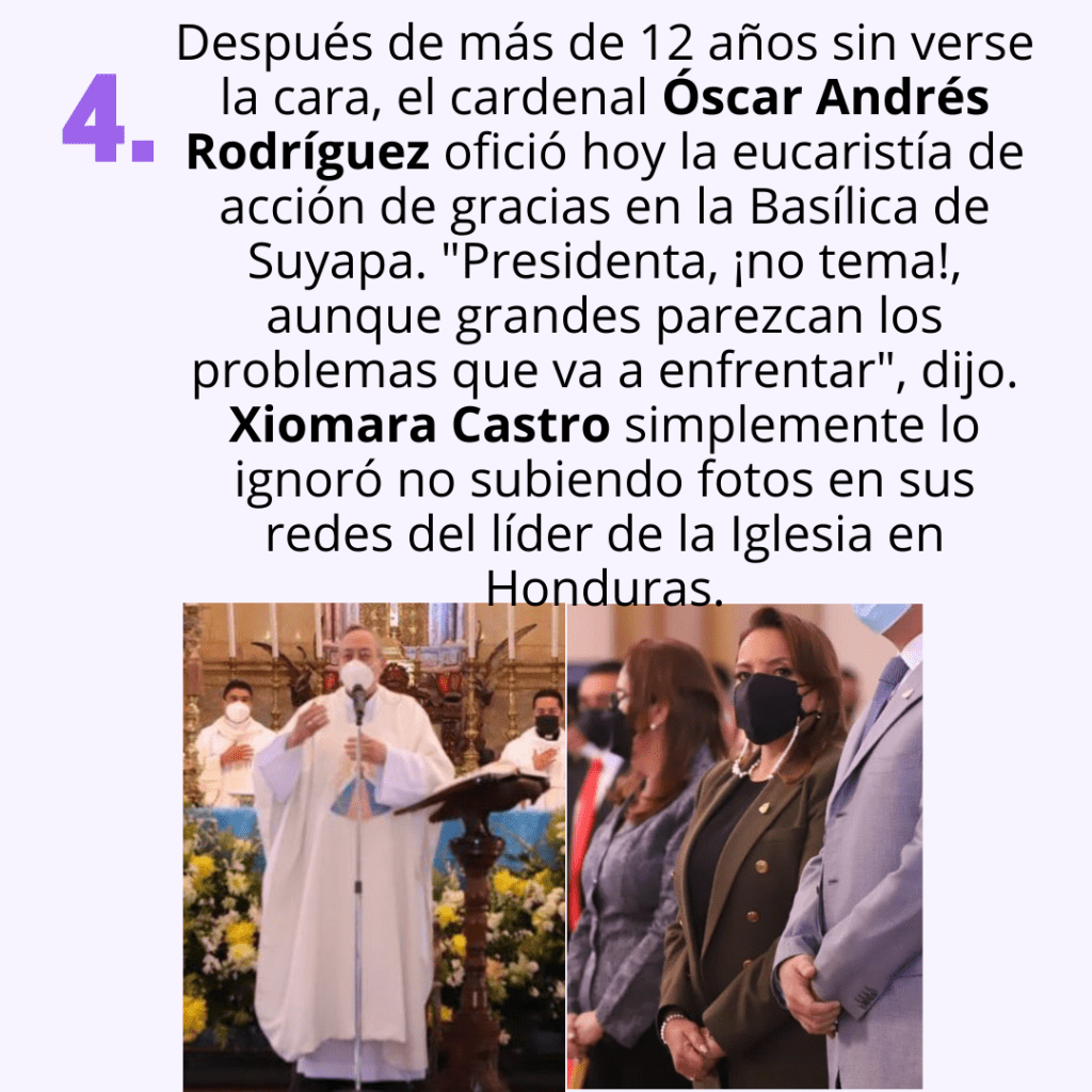 Xiomara Castro versus el cardenal Óscar A. Rodríguez, frente a frente tras el golpe de Estado.