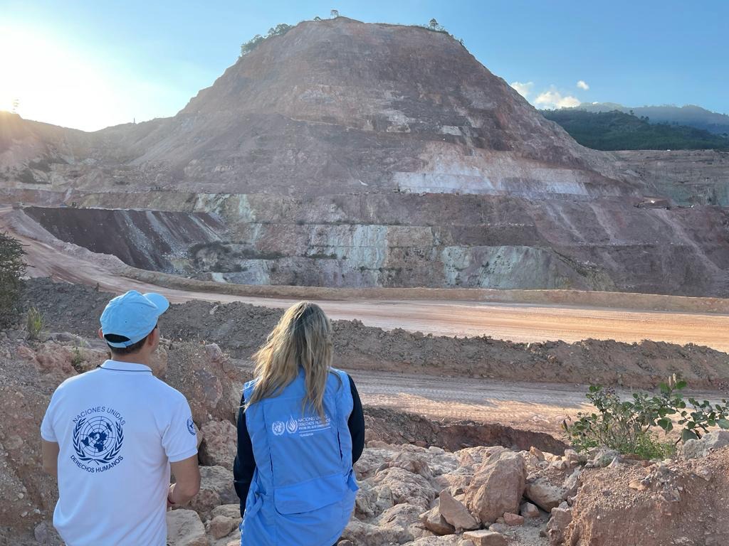 La Representante de OACNUDH en Honduras, Isabel Albaladejo Escribano, y su equipo realizaron una misión a La Unión en seguimiento a las denuncias por impacto medioambiental y social debido a la explotación minera en la zona. Durante la misión, la Oficina pudo observar que dicha explotación ha generado conflictividad y ruptura del tejido social, desplazamiento de comunidades, criminalización de defensores y defensoras del territorio, limitación al libre tránsito de las comunidades por la carretera controlada por la empresa, y un proceso de exhumación de cadáveres en el cementerio de Azacualpa en incumplimiento de estándares internacionales y de las resoluciones del Juzgado de Letras de lo Contencioso Administrativo de San Pedro Sula, la Sala de lo Constitucional y la Corte de Apelaciones de Santa Rosa de Copán, que desde el 2018 han ordenado la paralización de las actividades de exhumación.