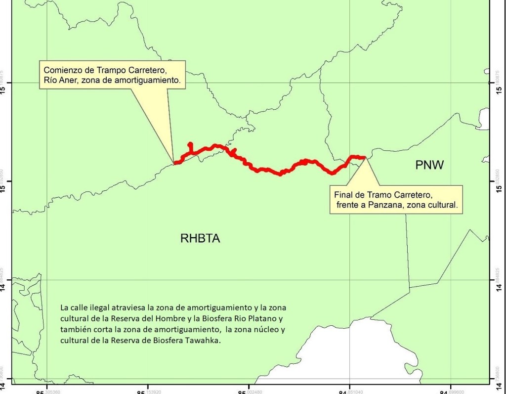En el pasado, los grupos indígenas han denunciado que falsos representantes de pueblos autóctonos, terratenientes ganaderos y hasta el narcotráfico han financiado las obras; no obstante, contradiciendo al secretario de Ambiente, el asesor presidencial, Manuel Zelaya, ha dicho que «se llegó a un acuerdo» para mantener las obras, siempre que no haya más destrucción del bosque.