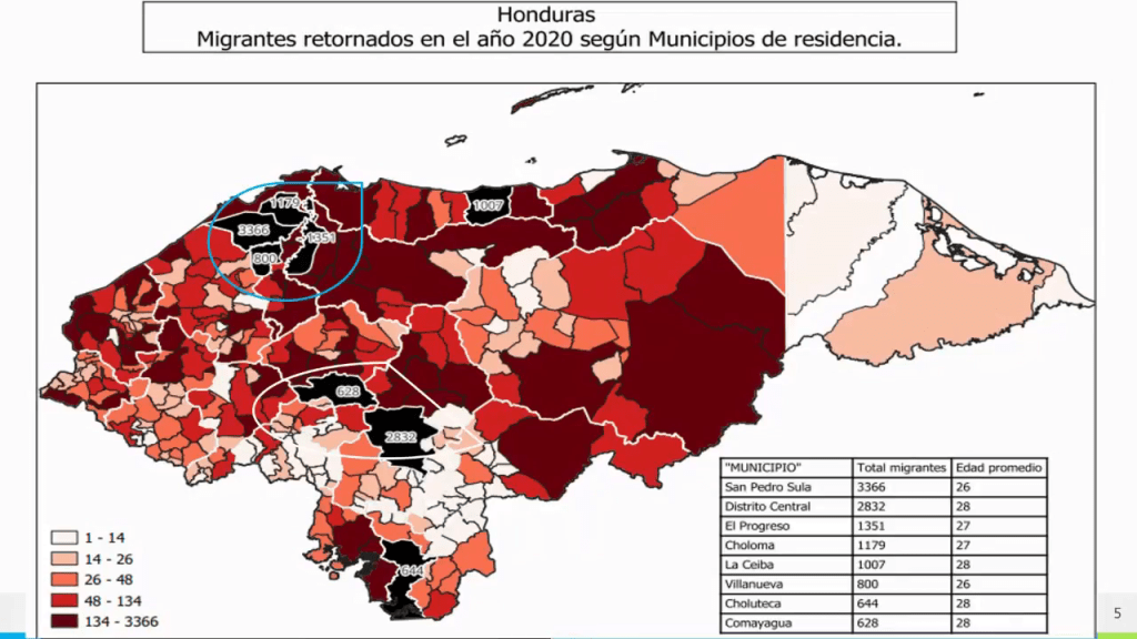 «La mayor producción de Honduras es migrantes que a diario salen a otros países en busca de oportunidades que aquí no encuentran. San Pedro Sula y Tegucigalpa siguen siendo las dos principales ciudades de donde salen los migrantes retornados, especialmente de la zona norte, en caravanas migrantes», dijo el director del Fosdeh, Mauricio Díaz Burdett.