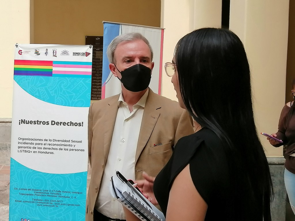 Un ejemplo de esas contribuciones, afirmó el embajador, es la presencia española durante el acto histórico celebrado el pasado día 9 de mayo, durante el cual el Estado de Honduras reconoció su responsabilidad internacional por la muerte de Vicky Hernández, mujer transgénero y defensora de derechos humanos.