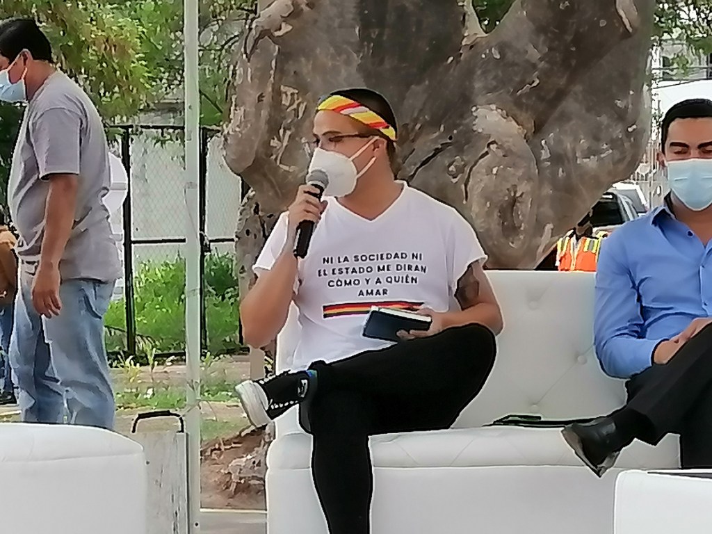 Se contó con la participación de Néstor Hernández, de Honduras Diversa, quien leyó un manifiesto crítico con respecto a la discriminación de la comunidad LGTBIQ+ en Honduras.
