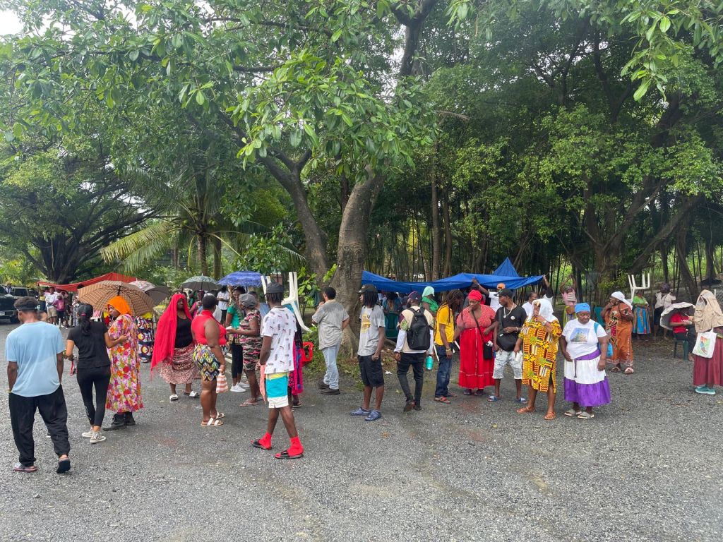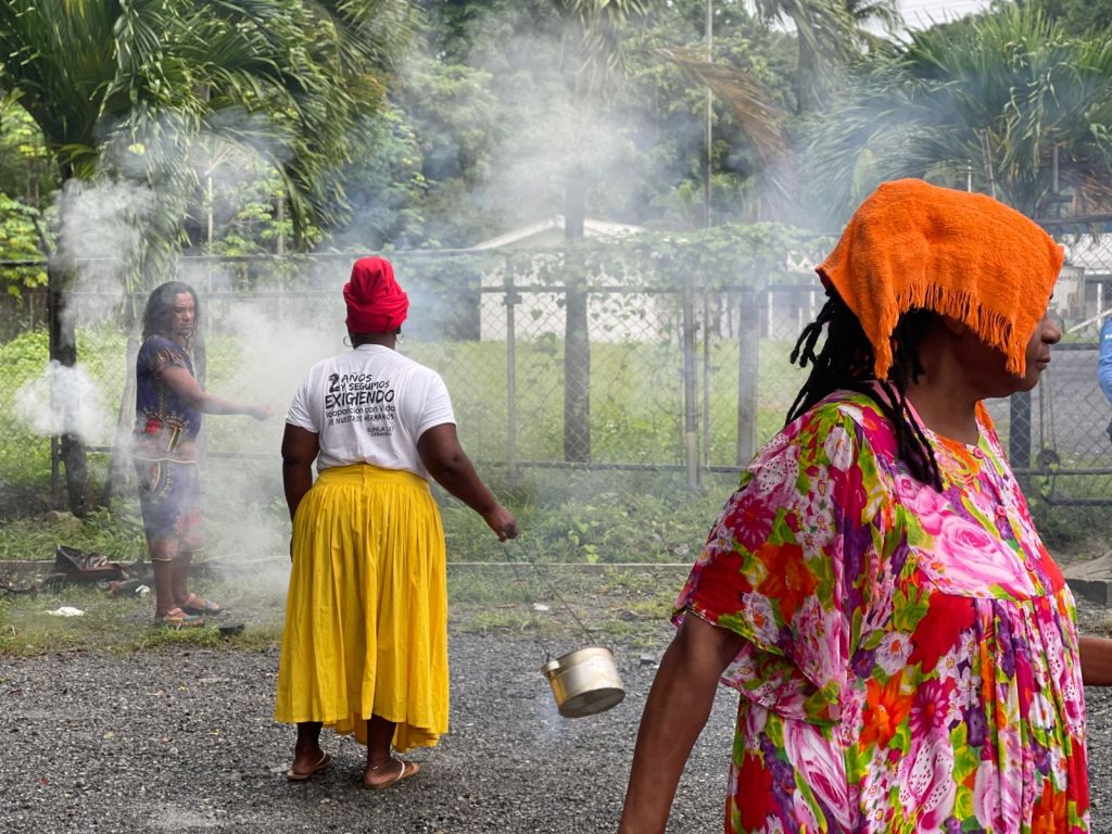 Al mismo tiempo, los manifestantes mostraron con orgullo elementos de su cultura como bailes y cantos ancestrales y ropa colorida. Las mujeres llegaron vestidas con turbantes rojos, azules y blancos, mientras otros pobladores encendían sahumerios y realizaban otros rituales pertenecientes a la espiritualidad garífuna.