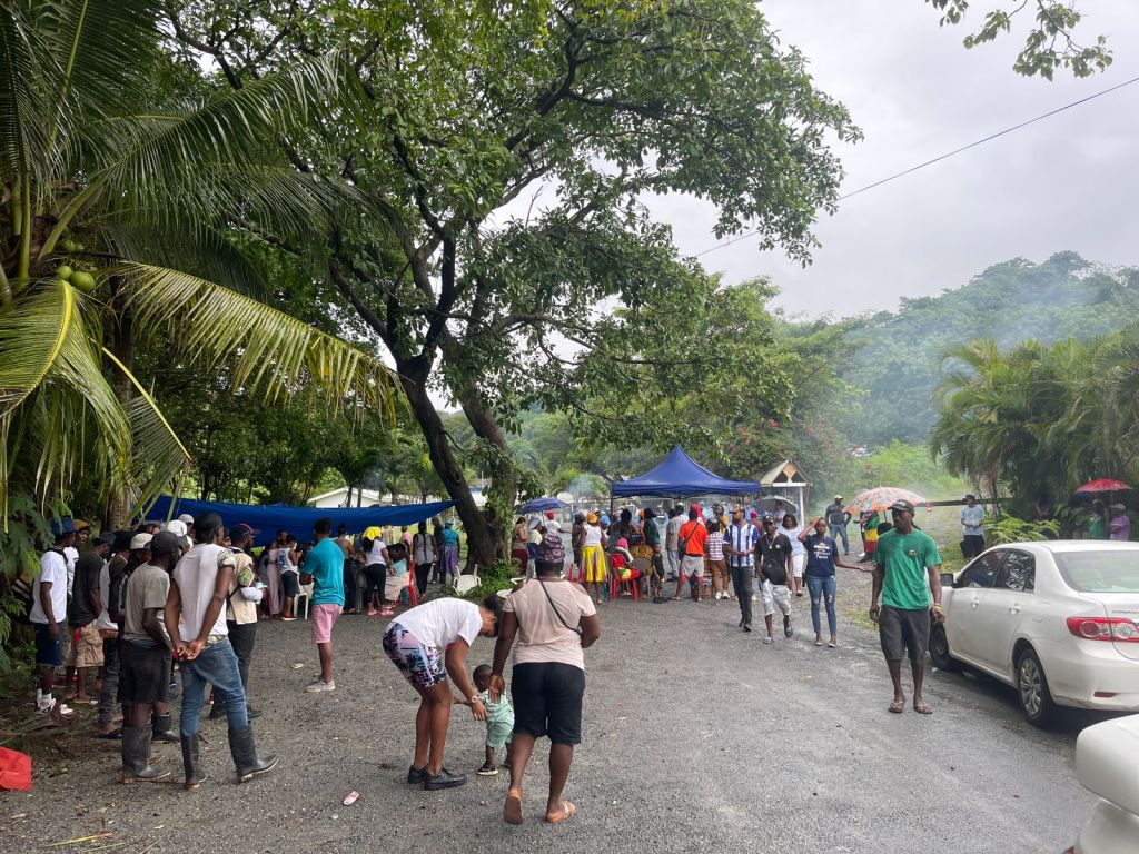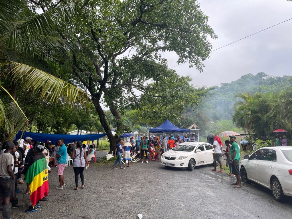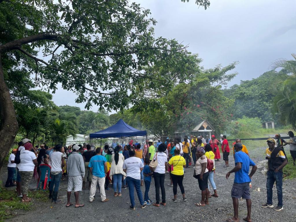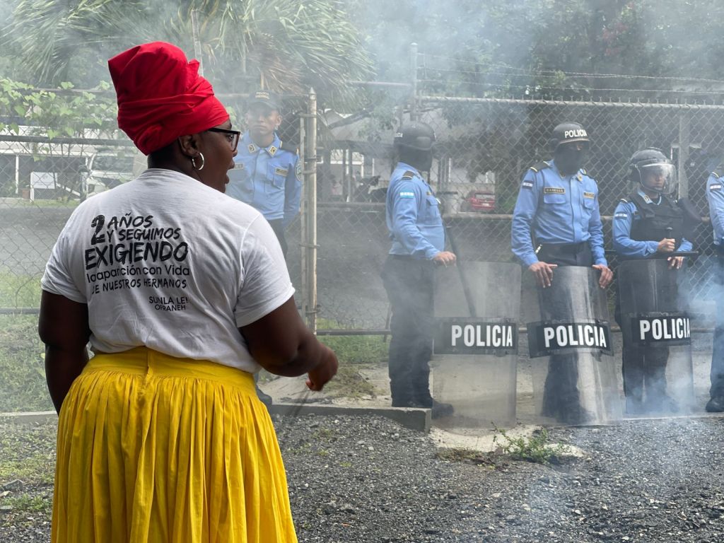 Más de 400 personas garífunas llegaron a protestar a los juzgados isleños con camisetas en las que se leían mensajes como «los garífunas no invadimos, recuperamos nuestro territorio» y «dos años y seguimos exigiendo la aparición de nuestros hermanos», refiriéndose a los cinco garífunas desaparecidos el 18 de julio de 2020 en Triunfo de la Cruz, litoral atlántico de Honduras.