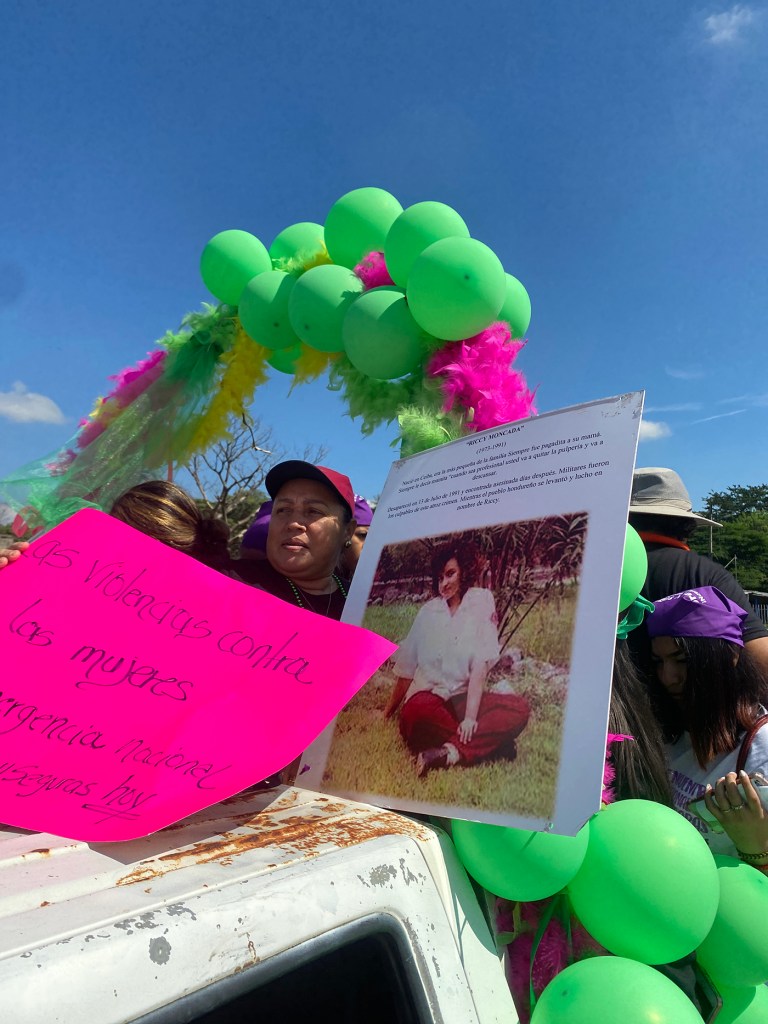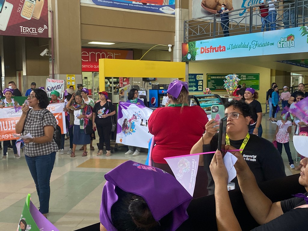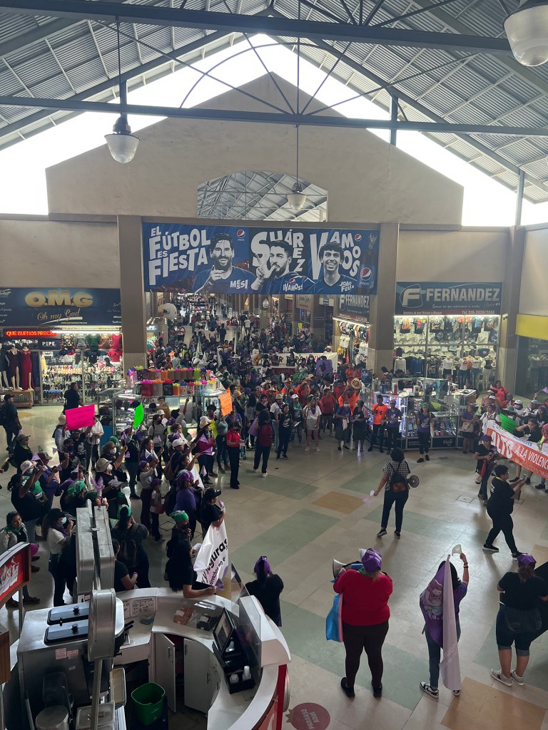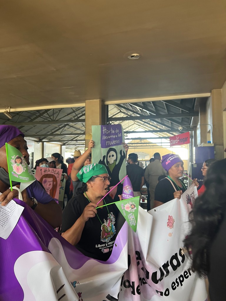 Pañoletas, pancartas, globos, listones, megáfonos y muchos deseos de pedir justicia acompañaban a cientos de mujeres, niñxs, jóvenes, adultas mayores y hombres durante su caminata en las instalaciones de la terminal de buses.