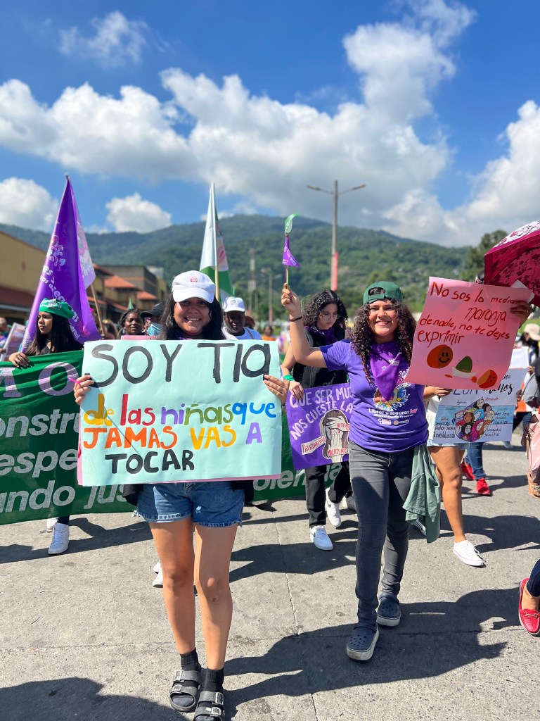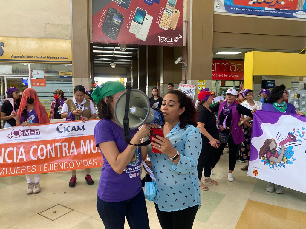 Organizaciones como la Comisión de Acción Social Menonita (CASM) y el Foro de Mujeres por la Vida se unieron al evento donde las mujeres protestaron con carteles y megáfonos contra la violencia que a diario corta vidas y sueños en Honduras.