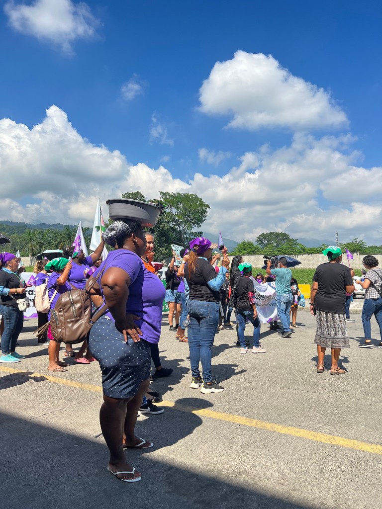 Una multitud protestó con megáfonos y carteles en San Pedro Sula, Tegucigalpa y La Ceiba para conmemorar el 25N