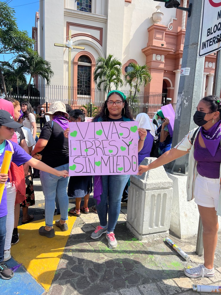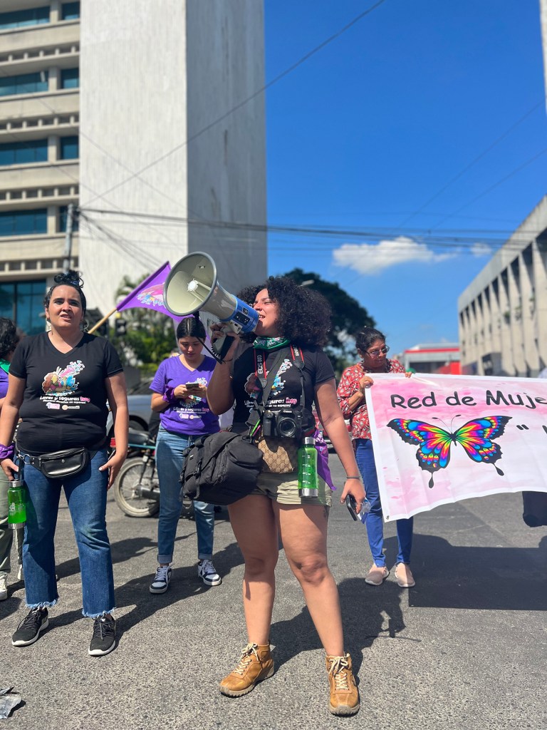 Al frente de la manifestación iban la líder de AFET, Allyson Hernández, y Claudia Hernández, quienes dirigían los coros con que las presentes exigían el respeto a los derechos vitales de las mujeres. «La gente se pregunta ¿y estas quiénes son? Somos feministas en revolución», gritaban a cada paso las manifestantes a través de altavoces y a viva voz.