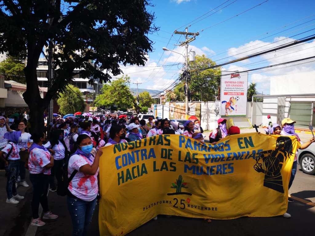 San Pedro Sula, Honduras. Tanto en San Pedro Sula como en La Ceiba y Tegucigalpa, las organizaciones de sociedad civil feministas salieron a las calles este 25 de noviembre para protestar contra la violencia histórica que perjudica a las mujeres en Honduras. Los actos en las tres ciudades tuvieron como objetivo conmemorar el Día Internacional de la Eliminación de la Violencia contra las Mujeres, llamado también 25N.
