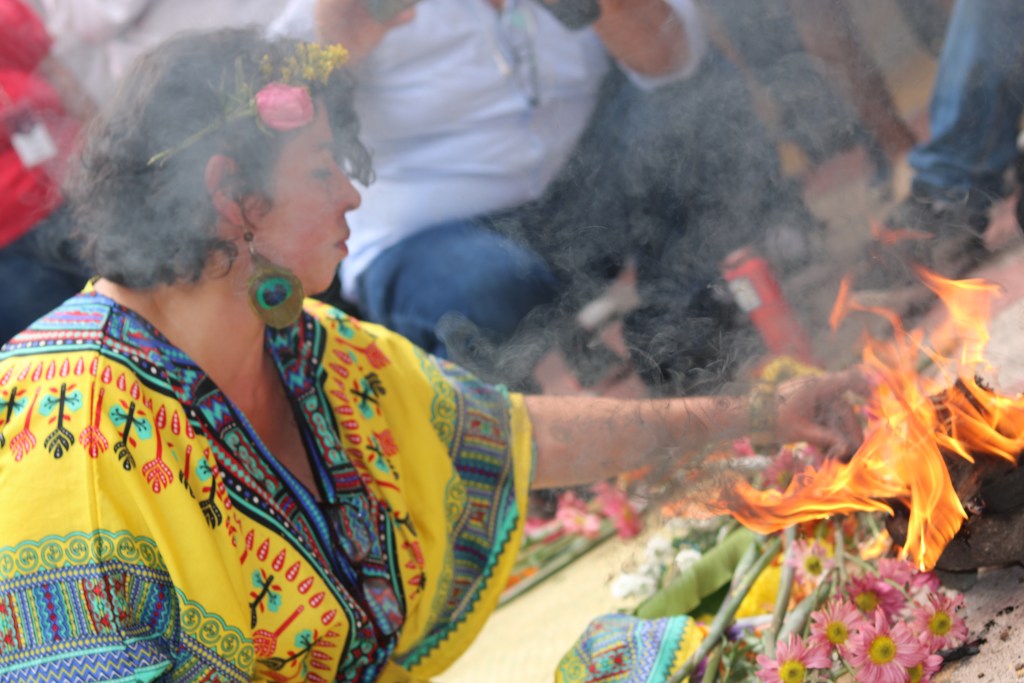 Al llegar al Congreso Nacional realizaron un acto con fogatas, flores y bailes en nombre de todas las compas cuyos casos han quedado impunes.