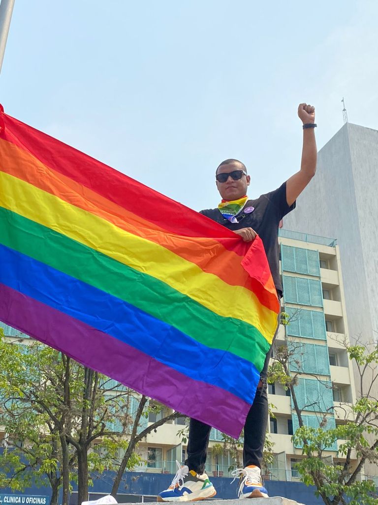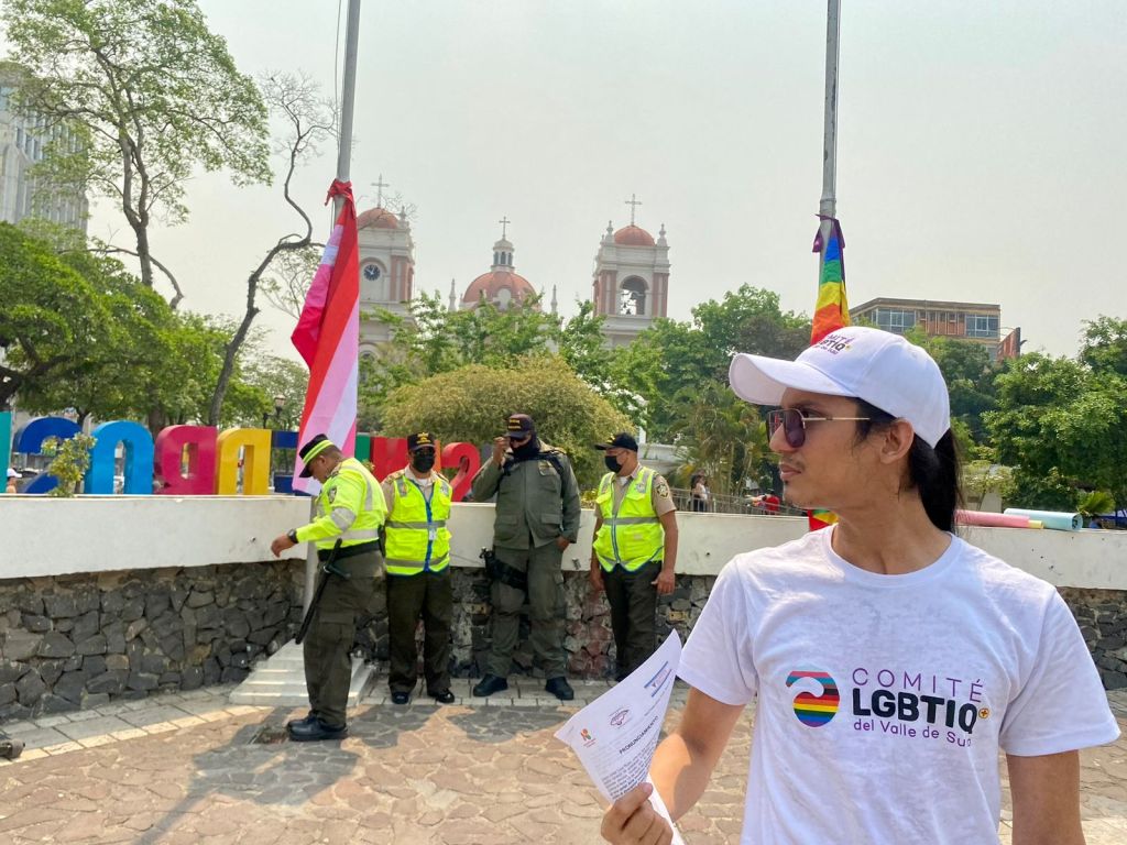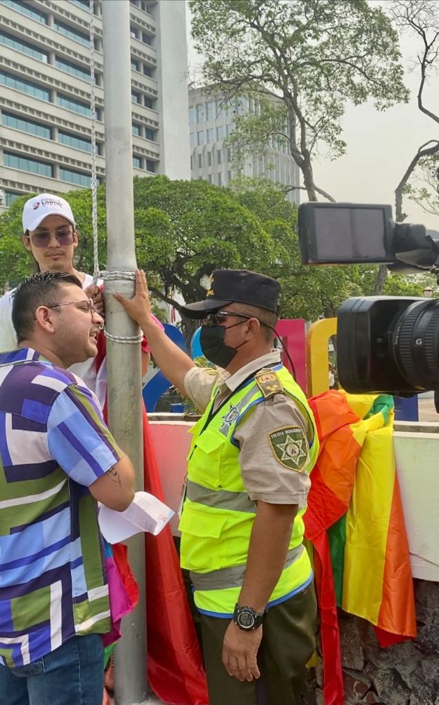 “Estas son órdenes de Roberto Contreras donde no permite una manifestación pacífica y jamás permitirá izar una bandera LGBTI+ lo hemos pedido con permiso y nos lo ha negado”, expresó Osman Lara, presidente del Comité LGBTIQ+ del Valle de Sula, quien enfatizó que en otras manifestaciones no habían tantos agentes resguardando el lugar.