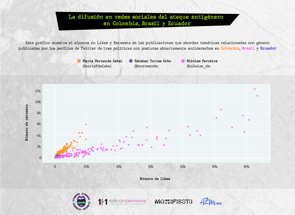 Esta investigación transfronteriza entre cuatro periodistas de Colombia, Brasil y Ecuador revela, a través de tres historias y de diversos análisis de datos, cómo operan los ataques de los discursos de odio: sus estrategias y narrativas digitales comunes, con las cuales atacan a mujeres y personas LGBTIQ+