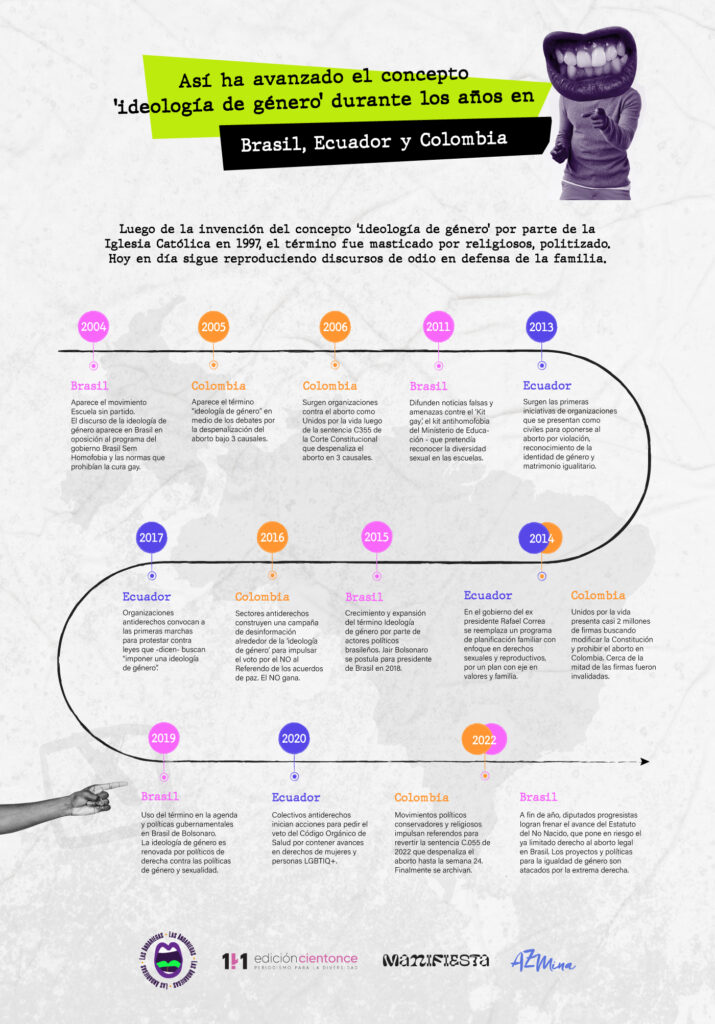 Asimismo, figuras públicas y asociaciones religiosas que se oponen abiertamente a los derechos para mujeres o personas LGBTIQ+ atribuyen a la “ideología de género” la responsabilidad por dichos avances.