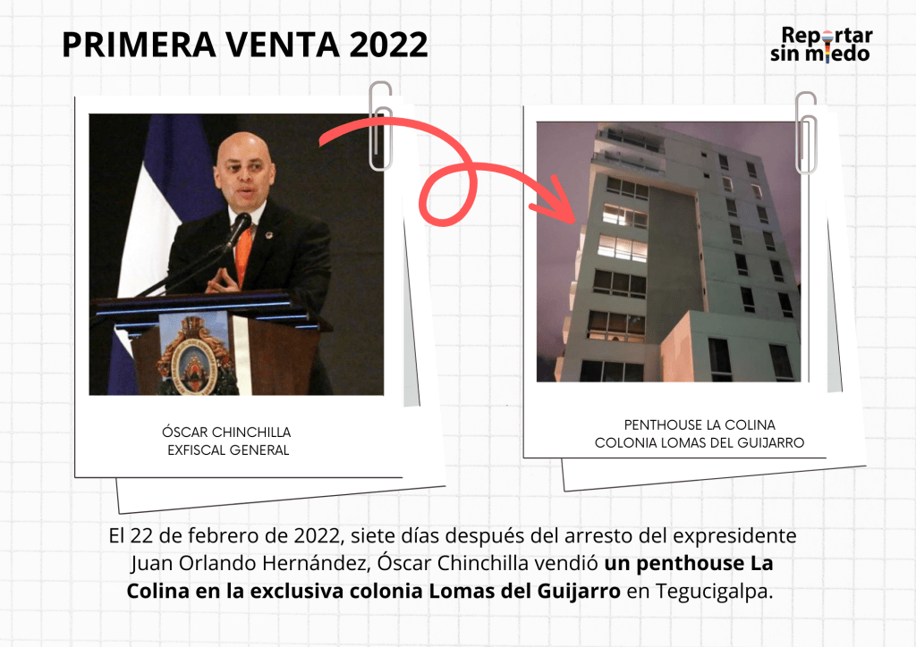 El 22 de febrero de 2022, siete días después del arresto del expresidente Juan Orlando Hernández en Tegucigalpa, Chinchilla vendió un penthouse en la exclusiva colonia Lomas del Guijarro en Tegucigalpa.