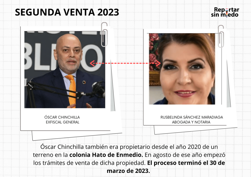Chinchilla también era propietario desde el año 2020 de un terreno en la colonia Hato de Enmedio. En agosto de ese año empezó los trámites de venta de dicha propiedad. El proceso terminó el 30 de marzo de 2023.