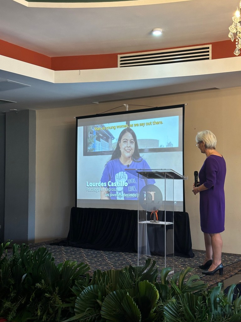 Asimismo, la embajadora presentó un video sobre el trabajo de Norma Carías y del Centro de Promoción en Salud y Asistencia Familiar (Ceprosaf), del cual ella es socia fundadora y directora ejecutiva.