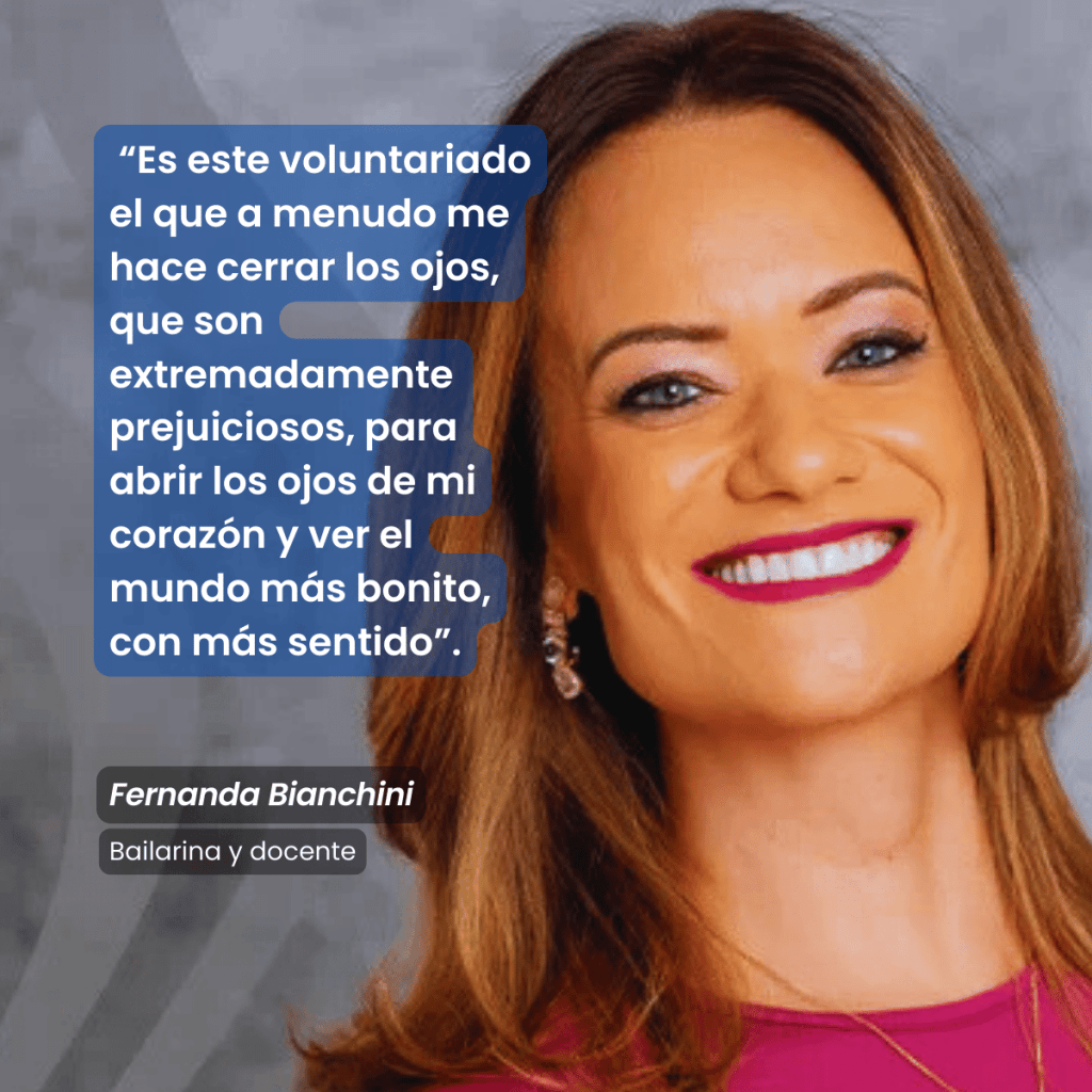 Fernanda empezó a bailar ballet muy joven. Tenía 15 años cuando el Instituto Padre Chico para Ciegos de São Paulo la invitó a enseñar ballet a los niños. “Estaba de visita en el centro, acompañando a mis padres en su trabajo voluntario, y un día una de las hermanas me dijo ‘tienes una postura tan bonita, ¿no quieres venir a enseñar ballet a los niños del Instituto?