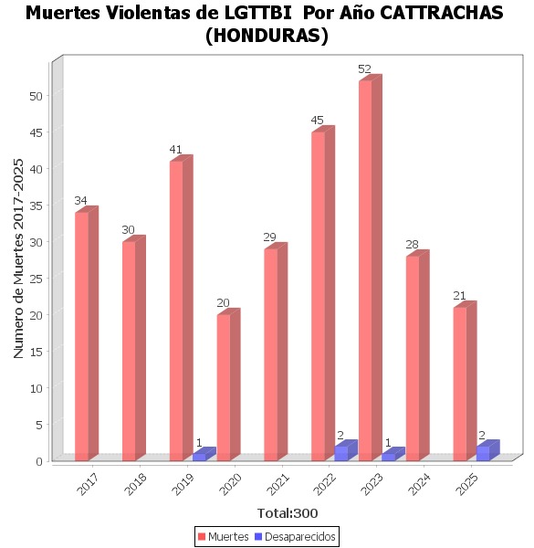 Las cifras muestran la magnitud del problema. Entre 2021 y 2025 se registraron 175 muertes violentas de personas LGBTI y cinco desapariciones. Mientras tanto, del 2017 al 2025, el total asciende a 300 muertes y seis desapariciones.