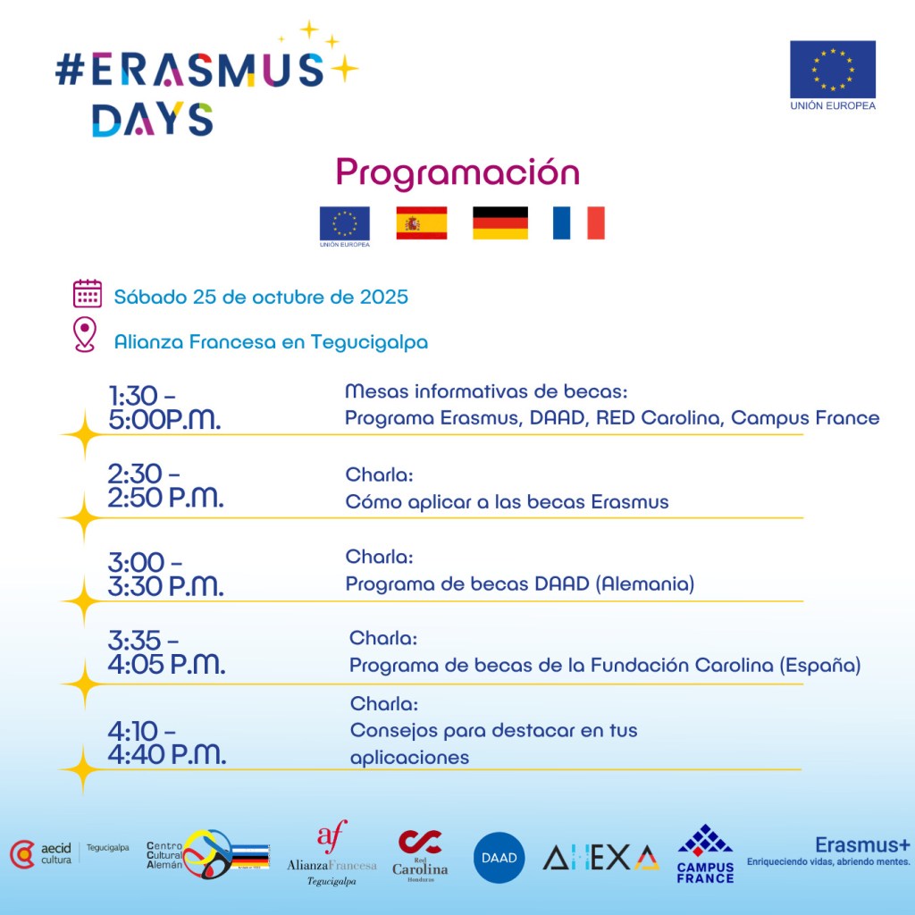 El evento se llevará a cabo de 1:30 p.m. a 5:00 p.m. en la Alianza Francesa de Tegucigalpa, con la participación de representantes de instituciones como Erasmus+ (Unión Europea), Fundación Carolina (España), DAAD (Alemania) y Campus France (Francia).
