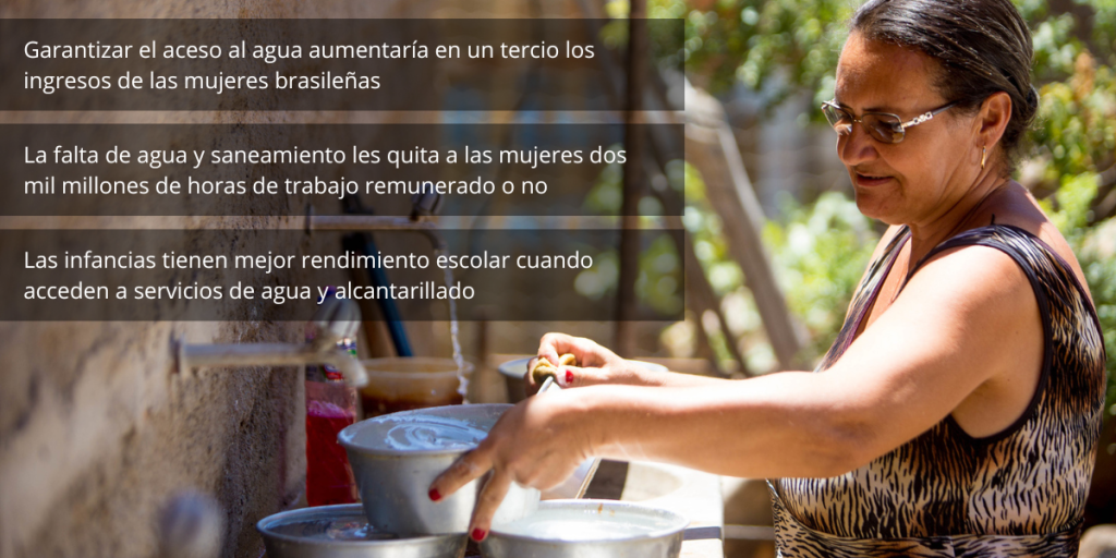 La acumulación de funciones ya implica un escenario desigual en términos de división del trabajo entre hombres y mujeres. Cuando este escenario se agrava por la falta de agua en los hogares, aparecen datos aún más alarmantes, como muestra un estudio del Instituto Trata Brasil: