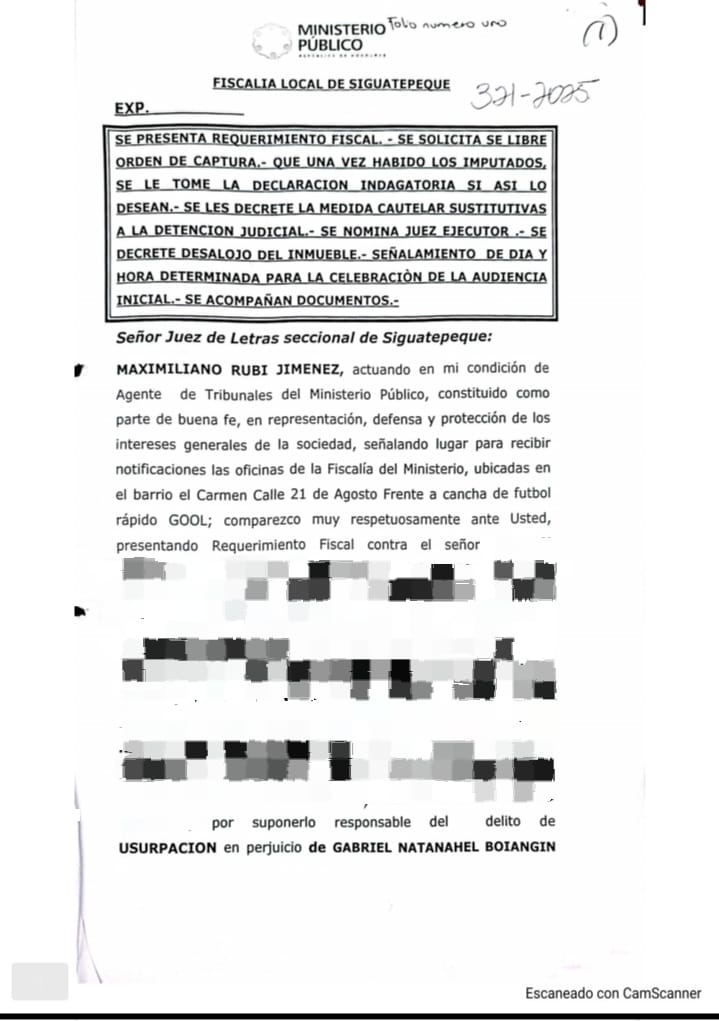 Kenia Oliva señaló que el Ministerio Público ha presentado varias acusaciones en representación del señor Natanael Boiangín. Sin embargo, aseguró la abogada, el juzgado de Siguatepeque declinó conocer el proceso y lo remitió al juzgado de competencia territorial.