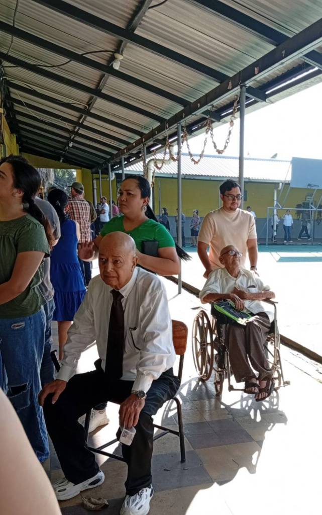 Familiares acompañan a electores de la tercera edad a votar en San Pedro Sula.