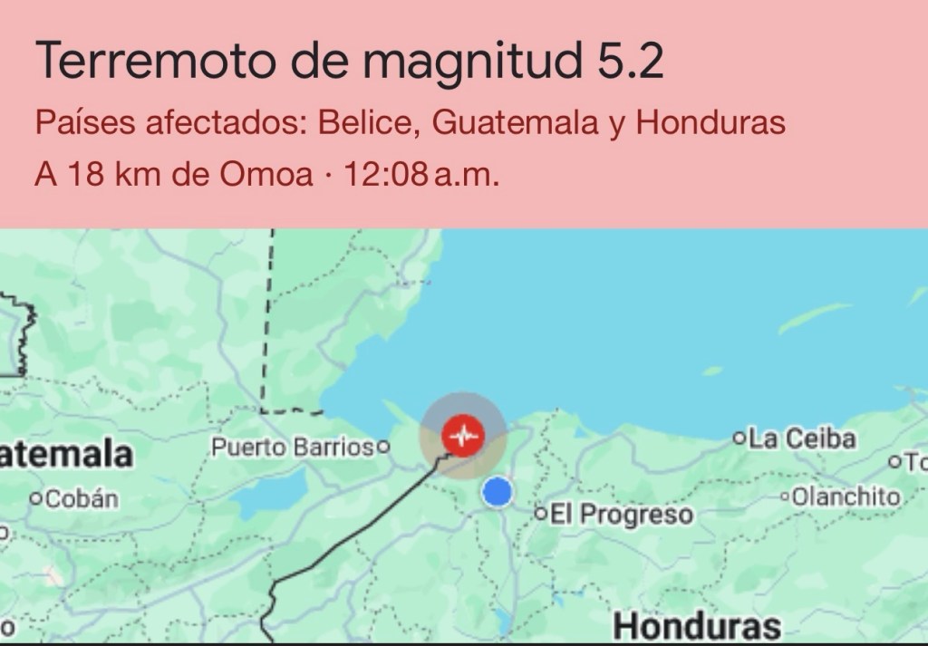 San Pedro Sula, Honduras. De acuerdo con el reporte preliminar del Servicio Geológico de los Estados Unidos (USGS), un sismo de magnitud 5.2 (mww) ocurrió este 16 de enero de 2026 a las 12:08 pm hora hondureña.
