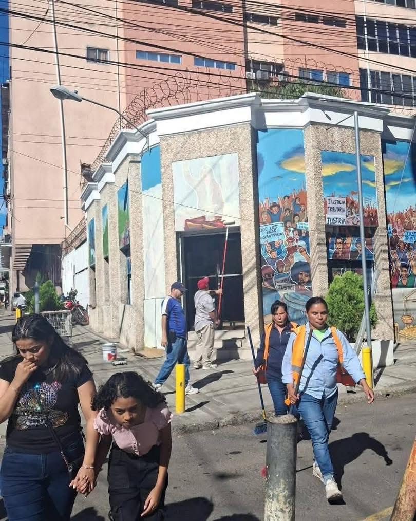 Tegucigalpa, Honduras. Una serie de murales que narraban visualmente la historia de las concesiones y las luchas sociales en Honduras, inaugurados el pasado 24 de septiembre en la fachada de la Secretaría de Finanzas (SEFIN), fueron cubiertos con pintura blanca por órdenes de las nuevas autoridades de la institución.