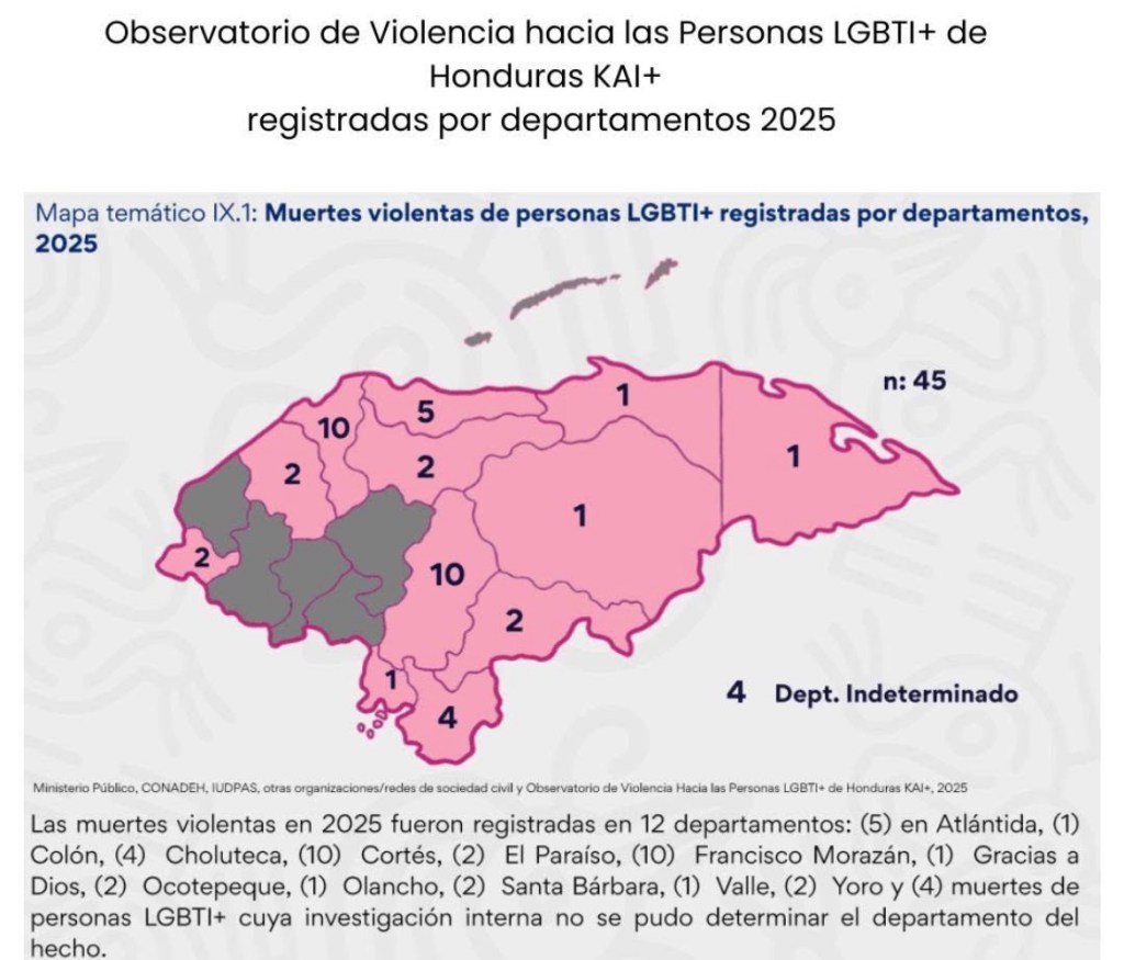 Además, en el 2025, se registró un hombre gay desaparecido. Estas cifras revelan la vulnerabilidad de las personas LGBTI+ en Honduras, así como la falta de protocolos diferenciados por parte de las autoridades.